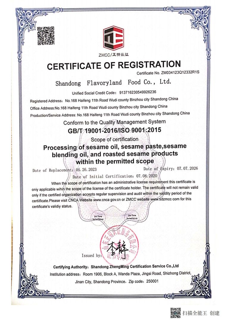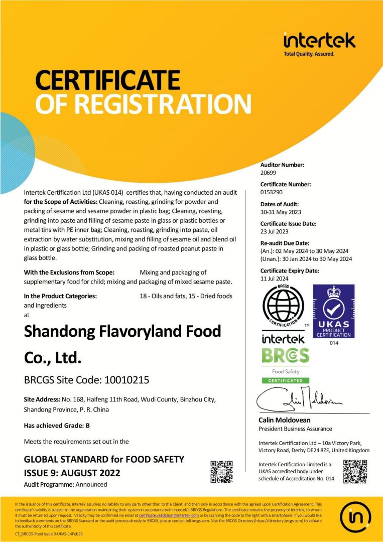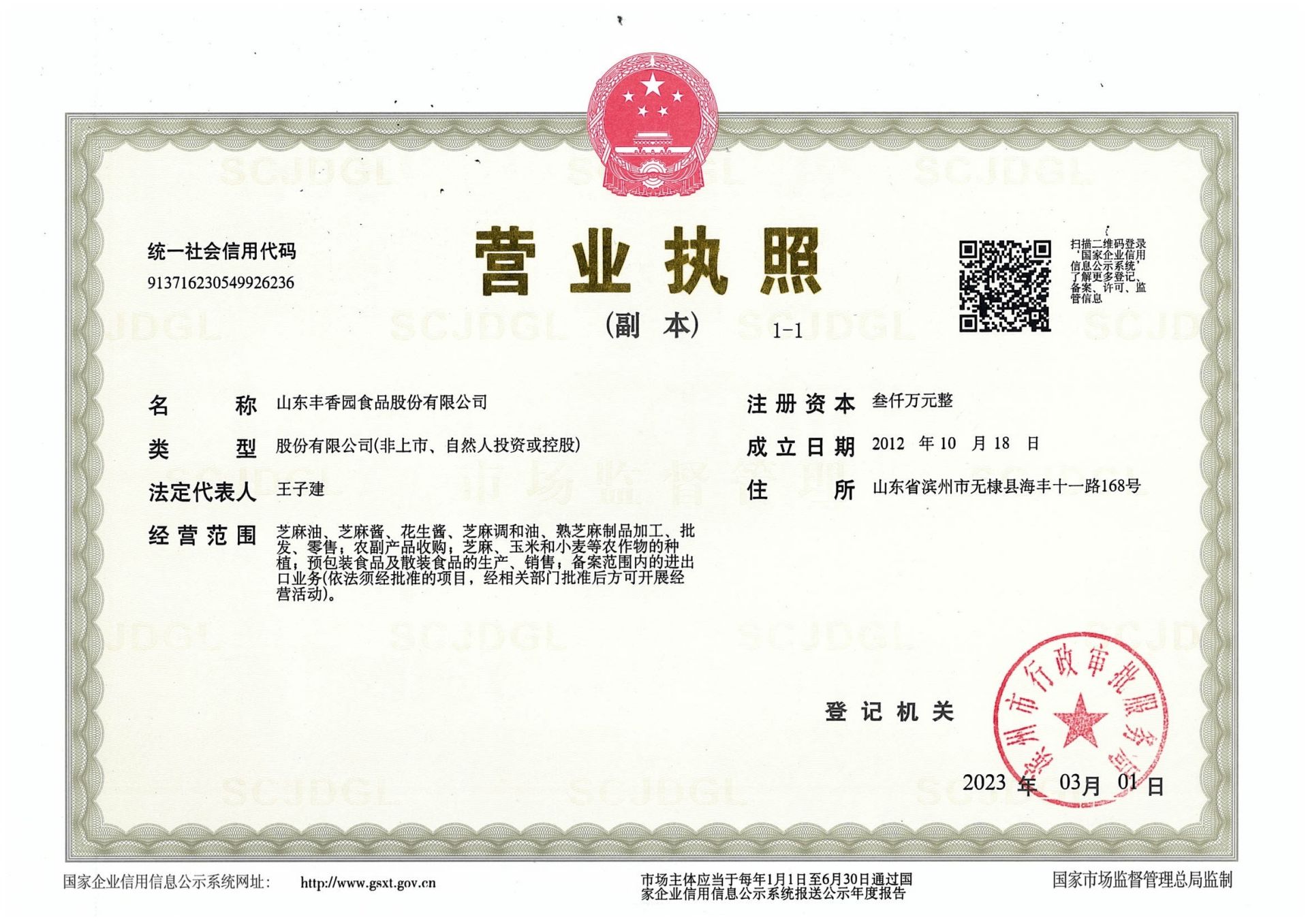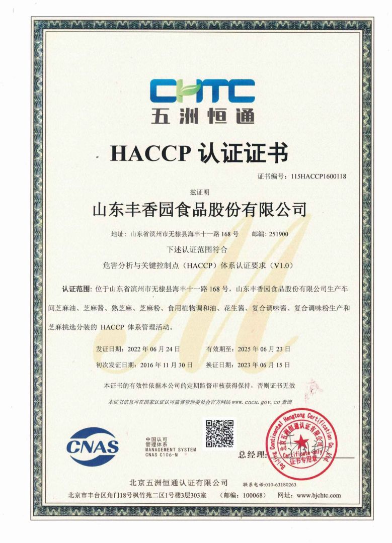 ? ? 豐香園小磨香油、芝麻調(diào)和油、花生醬、芝麻醬、混合醬、熟芝麻制品均已通過(guò)英國(guó)零售商協(xié)會(huì)BRC認(rèn)證、歐盟 美國(guó)和國(guó)內(nèi)有機(jī)、HACCP體系認(rèn)證,是山東省出口食品備案企業(yè)。